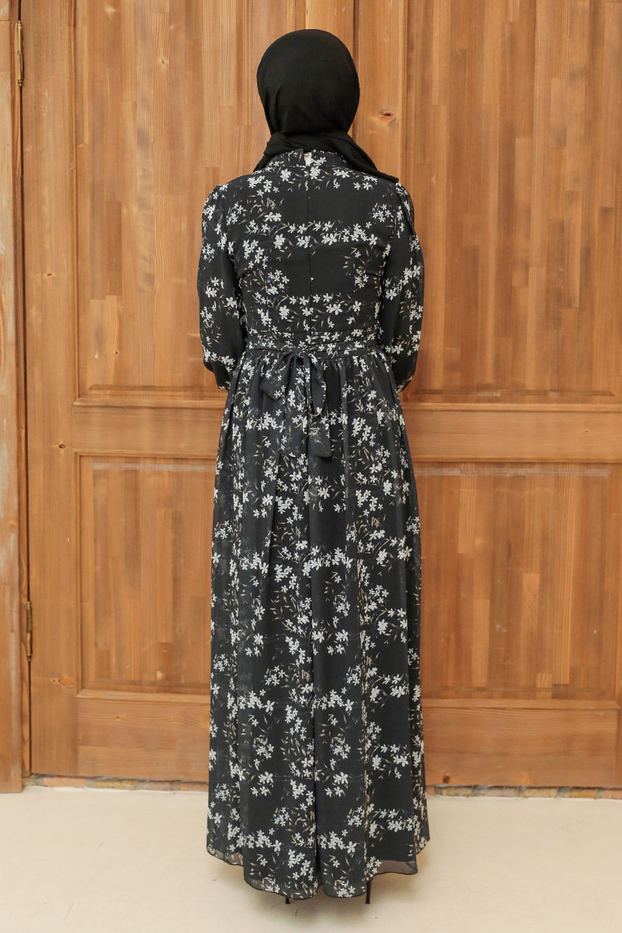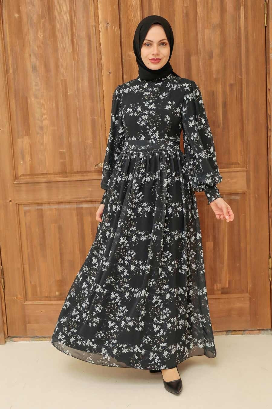 فستان محتشم أسود منقط نسائي