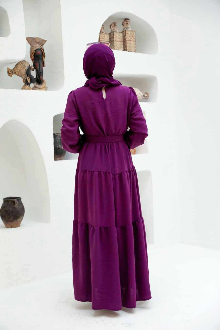 فستان طويل بنفسجي بحزام نسائي